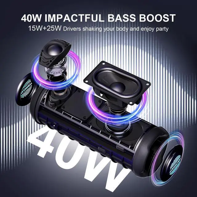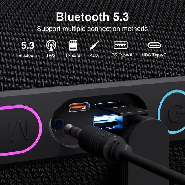 Bluetooth 5.3: This portable wireless speaker is equipped with a Bluetooth 5.3 chip and supports TWS pairing, delivering a stable connection up to 33 feet. Boasting loud, clear audio, it features multiple connection options, letting you quickly and effortlessly establish a wireless link with your smartphone, tablet, or any other Bluetooth-enabled device. Whats more, it supports USB, TF card and AUX inputsso you can play your favorite music anytime, anywhere ^^ Extremely Long