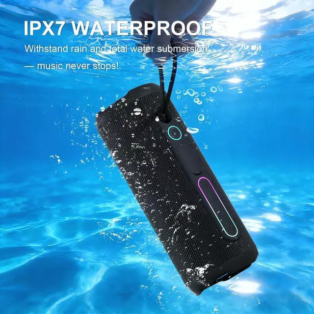 Waterproof Design: This T300 waterproof Bluetooth speaker boasts IPX7-rated protection, featuring outstanding waterproof performance. Whether youre cycling, camping, hiking or heading to places like the beach, you can fully enjoy the party vibe. It remains completely unaffected even after brief submersion in up to 1 meter of water, with no need to worry about rain, splashes or accidental drops into water ^^