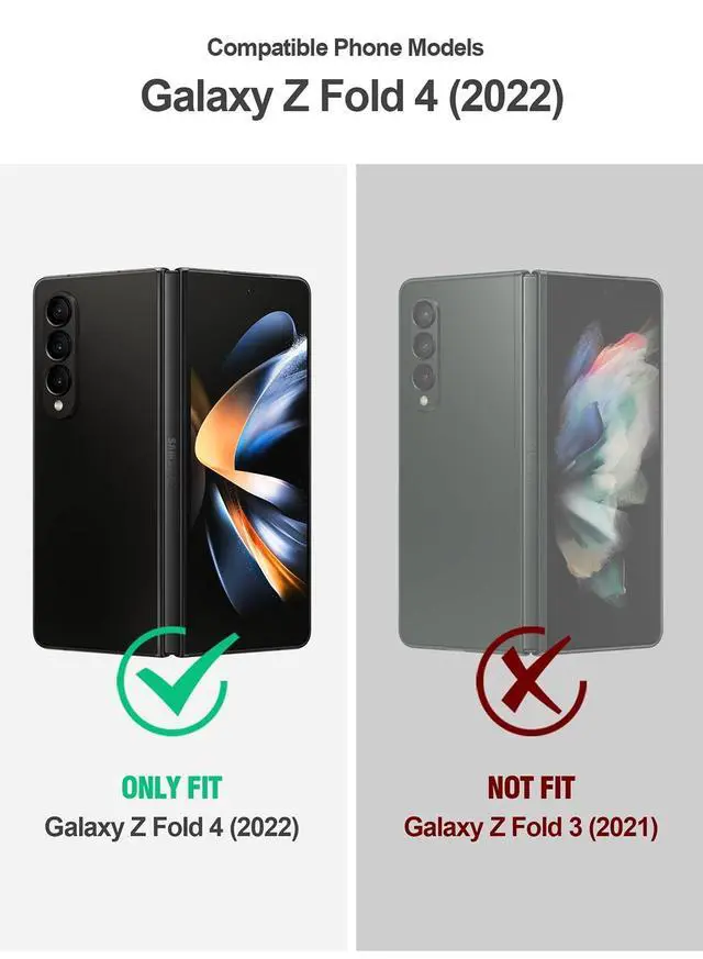 Phone model number before purchasing: SM-F936B, SM-F936B/DS, SM-F936U, SM-F936U1, SM-F936N, SM-F936W. ^^ Case for Samsung Z Fold 4 Case - Extra raised lips and corners of the front hard frame provide super Screen protection from drops, keep your screen safe. ^^ Fold 4 Case with