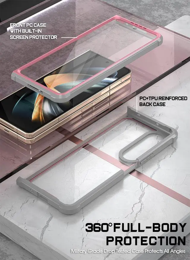 Screen Protector- Includes: Built-in Screen Protector, Clear polycarbonate back, and TPU lining and Bumpers. Impact resistant TPU lining around the polycarbonate case provides shock absorbing bumper protection for the corners and enhances grip to prevent sliding. ^^ Z Fold 4 Case Clear - Anti-Scratch Clear Back - Premium clear polycarbonate prevents scratches on the device. The full clarity and gloss showcases the best that your device has to offer. ^^ Fold 4 Case Full Body - [After-sales service] We promise if there is any problem with the product, please contact us immediately, we will provide you with the most satisfactory solution.