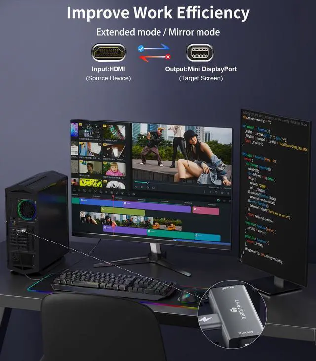 Mini Disaplayport adapter: The HDMI to Displayport adapter can transfer 4K content from laptops, desktops to more displays, giving you even better content