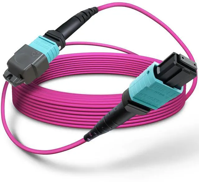 12 Fibers MTP OM4 Multimode Trunk Cables: MTP/MPO Cable designed with 12 strand OM4 fibers in a single cable, enhancing data rate performance by up to 12 times compared to traditional cables but take up less physical space.