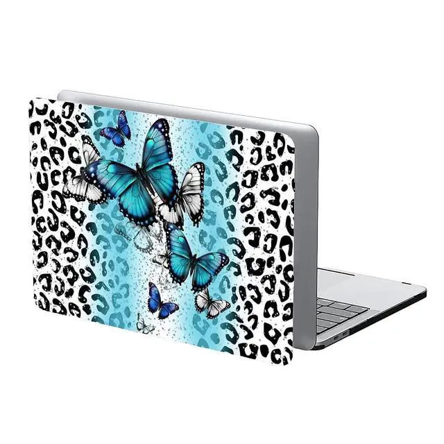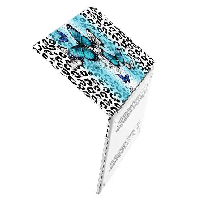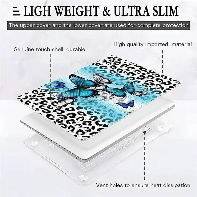 Yicomon Compatible with MacBook Air 15 Inch Case 2023 M2 Chip Model A2941, Plastic Hard Shell Case for Mac Air 15 with Touch ID (2023) - Leopard Blue Butterfly