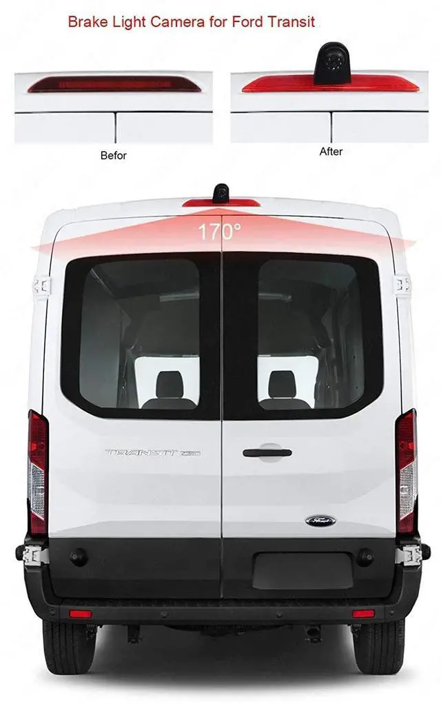 Backup camera is designed to completely replace the vans third brake light. When installed, this backup camera looks factory-fitted, as though it came with the van originally.