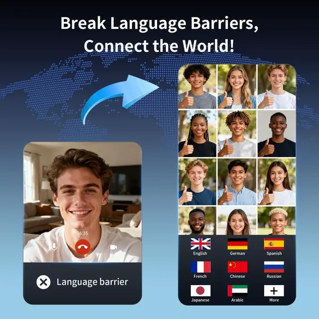 The Audio/Video Call Translation function lets you make multilingual calls by sharing a link with friends or colleagues, enabling two-way translation during voice or video conversations. ^^ [4-in-1 Multifunctional AI Earbuds] - Combining 4 functions in one compact design, these AI-powered translation ear buds provide AI translations, video calls, phone calls, and music playback. Effortlessly switch between work and entertainment without changing devices. Whether youre translating conversations, joining meetings, making calls, or relaxing with your favorite musics, this all-in-one language translator earphones device enhances productivity and convenience in every situation.