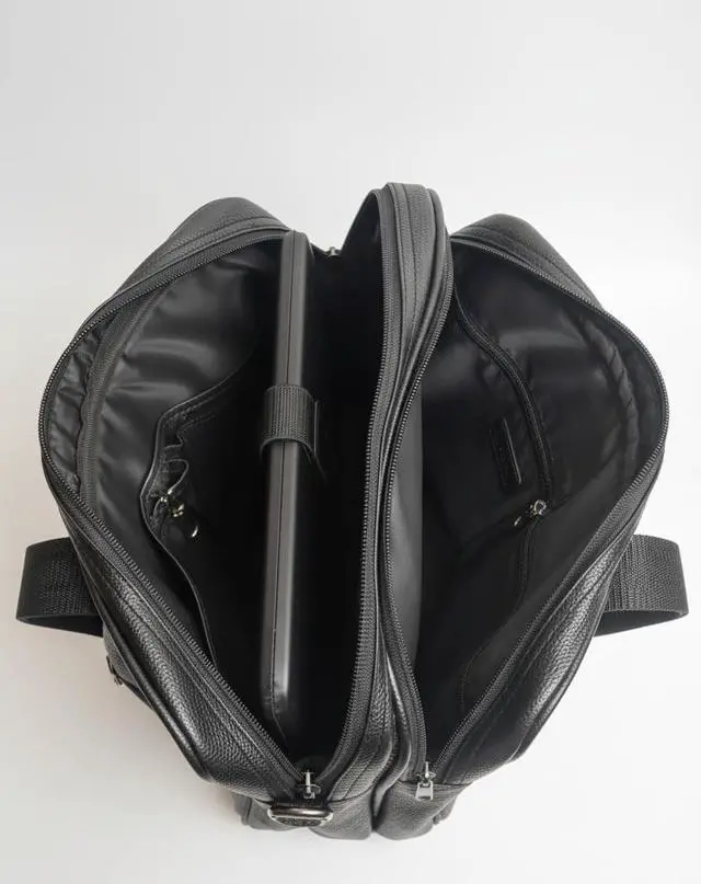 DescriptionUpgrade your daily carry with the Browne Leather Laptop Briefcase, crafted for professionals who value function and style. Made from premium genuine leather, this laptop bag delivers a timeless appearance and rugged durability. Designed for both men and women, it's perfect for office commutes, business travel, or meetings. Inside, you'll find organized compartments tailored to hold a 15.6 -inch laptop, tablet, chargers, documents, and everyday essentials. A waterproof inner lining and reinforced zippers protect your gear from unexpected spills or rain. arry it your wayuse the padded shoulder strap for comfort on the go or switch to the sturdy top handles for a more formal look.