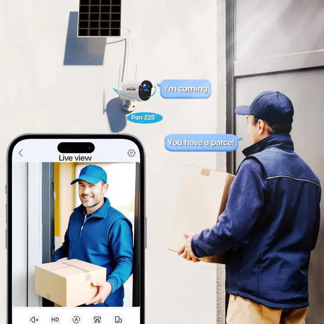 Equipped with a high-quality microphone and speaker system, the solar camera enables two-way interactive conversation at any time, allowing you to easily view real-time footage and communicate with visitors on the app. ^^ [PIR Motion Detection and Real-time Alerts] - With the help of intelligent infrared sensors to distinguish between people, vehicles, and pets from other objects, the accuracy of the alerts is greatly improved. Once motion is detected, you will receive alarm push on the HoMeYe Pro app, triggering alarm sounds and bright spotlights to deter intruders. Adjust motion sensitivity and customize alert areas to prevent false alarms.