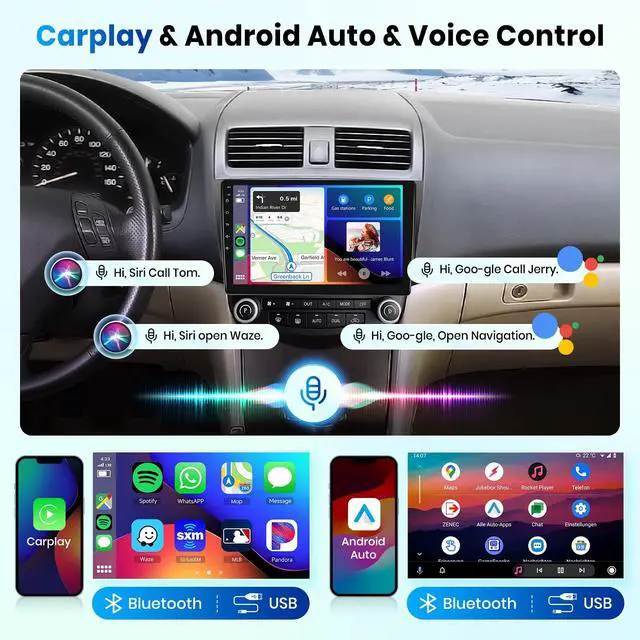 Android System: Enhance your driving experience with Accord 2005 Android car radio, boasting a powerful 2GB RAM and 64GB ROM system for smooth operation and ample app storage. Enjoy Wi-Fi connectivity for online surfing and app installation, turning your car stereo into a smart companion for your journeys. ^^ Wireless Carplay/Android Auto and