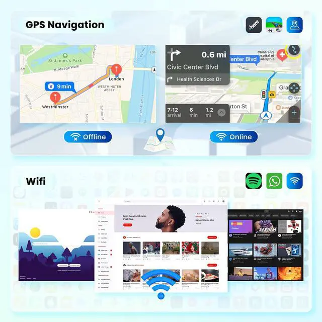 Navigation and WIFI: Experience the convenience of Accord Bluetooth 2006 car stereo featuring a dual navigation system that supports both offline and online maps, ensuring safe driving even in areas with weak or no cell reception. With WiFi connectivity, you can access various phone functions directly on the Android car stereo, enhancing convenience and connectivity for your driving experience. ^^ FM/RDS Radio and