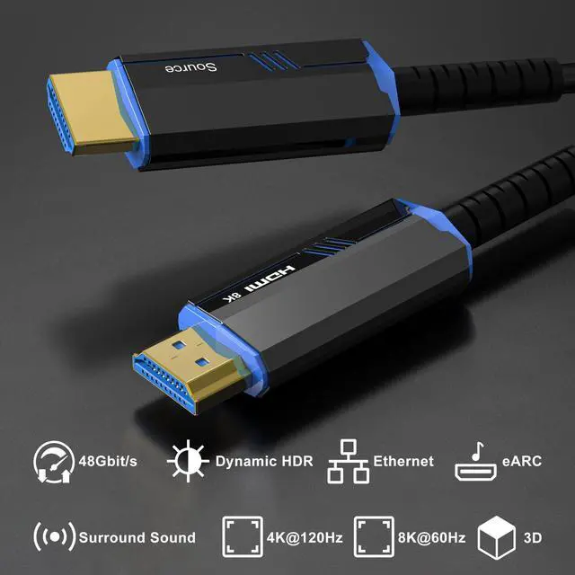 Ultimate Experience: The optical fiber complies with the HDMI 2.1 standard, supports 8K@60HZ, 4K@120HZ, and is backward compatible with 1440P and 1080P resolutions. Supports bandwidth up to 48Gbps and is backward compatible with HDMI 2.0 / 1.4 / 1.3 / 1.2 / 1.1 ^^