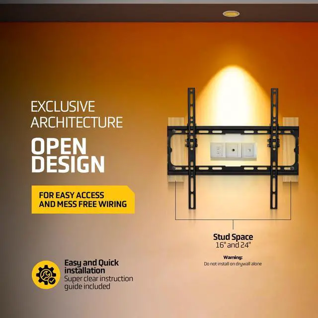 The slim tilt TV wall mount bracket keeps your screen close to the wall, saving floor and room space. ^^ Open Design with Quick Release Mechanism The flat-screen TV wall mount features an open architecture that enhances airflow and simplifies cable management. Equipped with automatic spring locks and quick-release cords, it allows you to remove or adjust your TV easilya strong, secure, and practical choice for modern home setups. Durable steel TV wall mount bracket ensures lasting strength and reliability for years of safe use. ^^ EASY INSTALLATION & RELIABLE PROTECTION This TV mounting bracket comes with all necessary hardware and a clear 3-step installation guide.