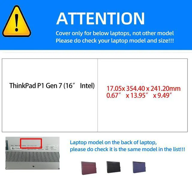 Models: for Lenovo ThinkPad P1 7th Generation Mobile Workstation Laptop 16 inches, Dimensions ( 354.4 x 241.2 x 17.05 mm/ 13.95 x 9.49 x 0.67 inches). Not applicable to other models.