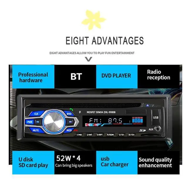 ^^ USB Car Radio: Support power output can charge for mobilephone or other USB device. Insert the disc can automatically boot function.
