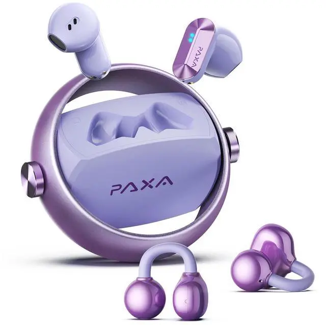 2025 New Combo Clip On Open Ear EarbudsPAXA has launched a new series of 2 in 1 clip on earbuds + wireless in ear earbuds, allowing you to switch between different over ear earbuds as you please to meet the needs of different scenarios. Say goodbye to insufficient battery life and different usage scenarios. No need to choose, you can have two pairs of wireless headphones. ^^ Bluetooth 6.0 &High Fidelity SoundUpgraded open ear earbuds with the latest Bluetooth 6.0 chip, achieving ultra stable directional pairing speed, providing zero latency, enhanced processing power, and efficient energy consumption.