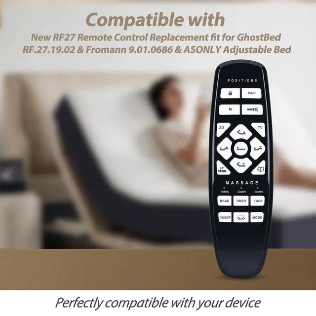CompatibilityWDZP New RF27 Replacement Remote Control fit for GhostBed RF.27.19.02 & Fromann 9.01.0686 & ASONLY & King Luxury Adjustable Bed