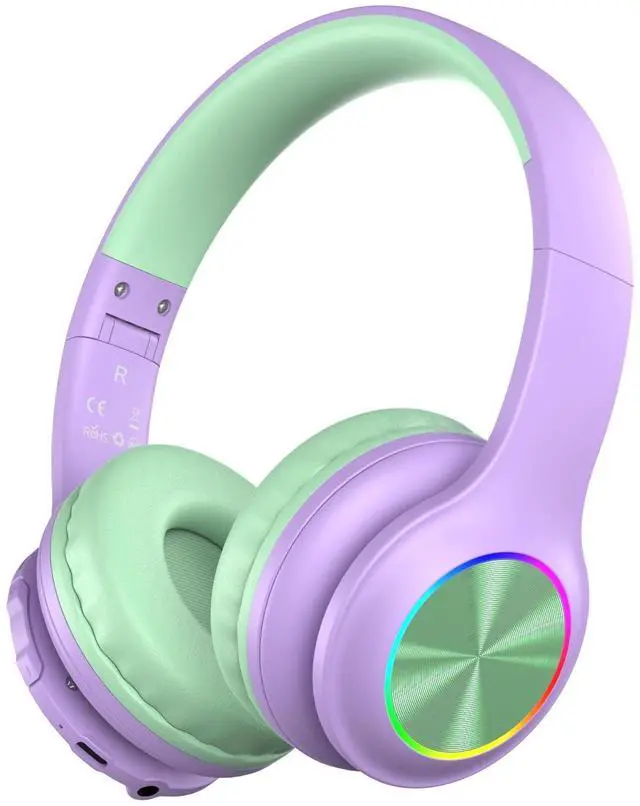 Safer Studio-Grade audio Quality - We believe creating good listening habits early starts with great sound quality, so Candy Bila wireless kids headphones balanced response curve provides your kids or teens with the finest genuine studio sound, including clear, crisp vocals and full dynamic bass all within the safety of 94 dB. ^^ Colorful LED Lights - Kids enjoy bright colors and things that flash. In addition to the usual features, this wireless kids headphones come with a delightful bonus: red, blue, and green LEDs cap off both ends of the headphones. The LEDs will dance and flash in tune with the music, and your child might too. ^^ Bluetooth 6.0 & Built in