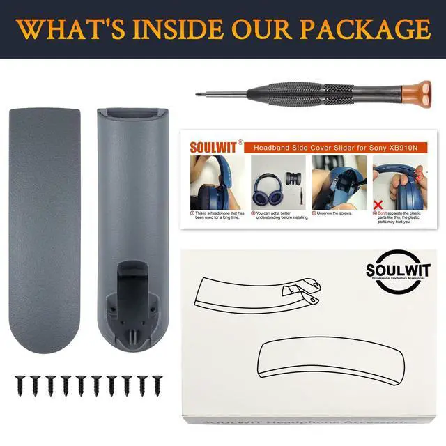 SOULWIT Headband Side Cover Slider Outer & Inner for Sony WH-XB910, XB910N Extra Bass Noise Cancelling Headphones(Do Not Fit WH-XB900N), Replacement Head Band Repair Part Accessories Kit - Grey