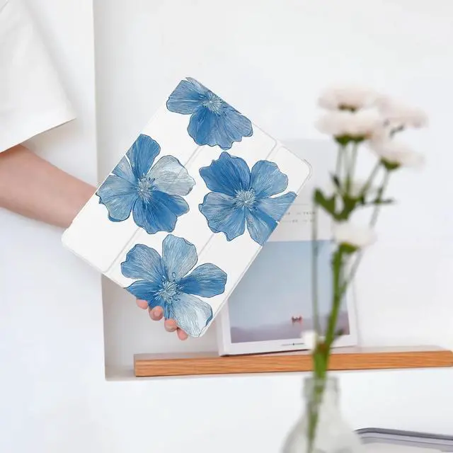 BlHMCASE Cute Flower Floral for iPad (A16) 11th Generation Case 11 Inch 2025, for iPad 10th Generation Case 10.9 Inch 2022 with Pencil Holder, Auto Sleep/Wake, White Leather Soft TPU Back Cover