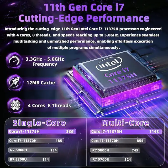 Blazing Fast Performance with Intelligent Cooling Say goodbye to lag! The 11th Gen Intel Core i7-11375H Special Edition Processor (4 Cores, 8 Threads, up to 5.0 GHz) delivers desktop-class power for video editing, 3D rendering, and gaming. Intel's 10nm SuperFin technology and our advanced cooling system ensure high performance remains stable and quiet, even under heavy load. ^^ Immersive FHD IPS Display Enjoy a stunning view on the 15.6" FHD IPS screen with a 90% screen-to-body ratio. Powered by Intel Iris Xe Graphics (up to 1100MHz), it delivers vibrant colors, sharp details, and wide viewing anglesperfect for creative professionals and gamers.