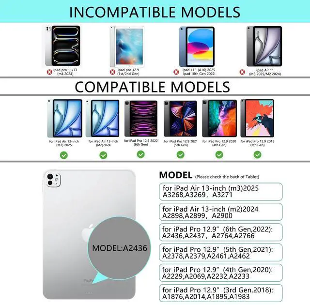 Compatible]: This for iPad Pro keyboard case is designed for iPad Air 13 Inch M3 2025( A3269, A3271) / Air 13 Inch M2 2024A2898, A2899, A2900) / Pro 12.9 Inch 2022 6th