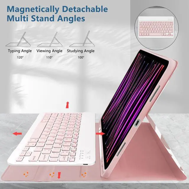 Sleep/Wake]: This for iPad Pro case will automatically put your for iPad to sleep when you close the front cover of the case. Because an iron keyboard may prevent magnets from attracting to each other, remove the keyboard for optimal sleep/wake up ^^ [Include