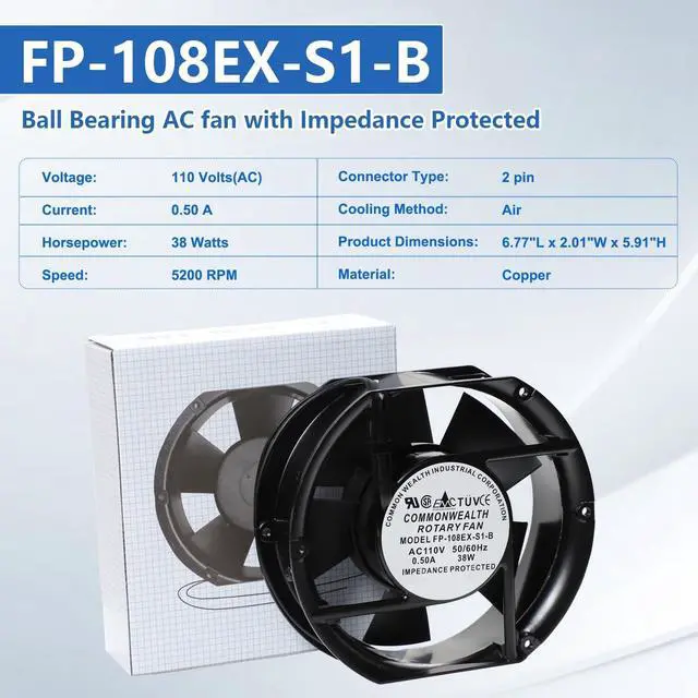 Suitable & Durable: FP-108EX-S1-B Cooling Fan Is made of high-quality Metallic materials, Which are not easily damaged, Have a long service life, High rotation speed, and Strong wind force. ^^ 4. Easy InstallationFP-108EX-S1-B Ball Bearing Cooling Fan is incredibly easy to install. Before installation, please Cutting off the power, wear work gloves to protect your hands. ^^ 5.