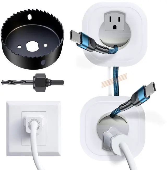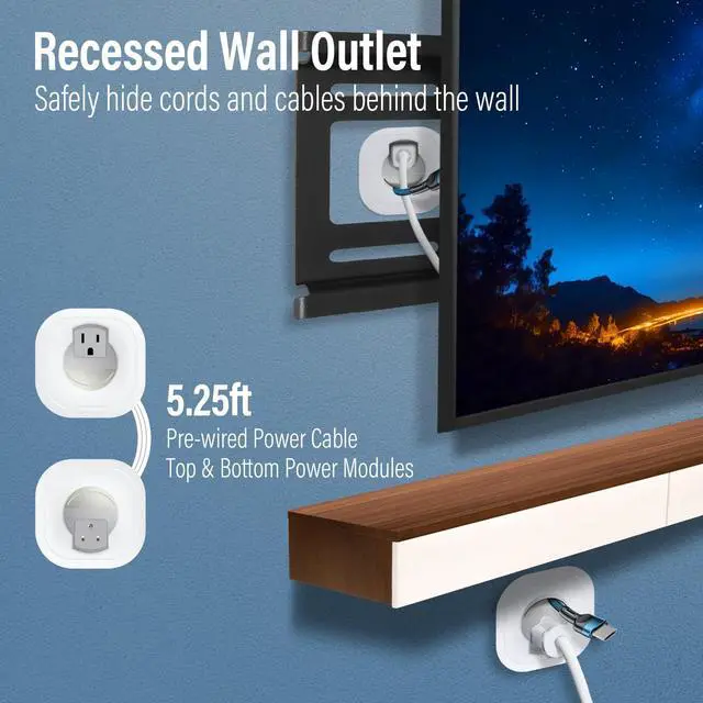 Easy To Install: This DIY in wall cable management kit includes a drywall hole saw for a perfect fit and secure locking bracket wings; All you need to bring is a drill, allows for neat and easy installation in under 30 minutes; Due to its pre-wired design, no electrician or hard wiring is required, with a clean, professional appearance once installed ^^