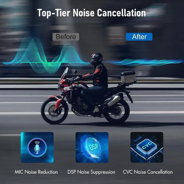 6-Person Group Intercom & Music SharingTK-X4 motorcycle Bluetooth headset can connect up to 6 TK-X4 or X4SC units (Optimal for 4 units) and their communication distance is up to 2 kilometers, keeping you connected with your group during your motorcycle ride. The maximum communication distance is 800 m in two-way intercom. It also featured music sharing, allowing two riders to enjoy the same song simultaneously during their journey. ^^ Powerful Noise Cancellation & AptX Audio Technology With advanced DSP and CVC noise reduction technology and AptX high audio coding technology of Bluetooth 5.4, which provide powerful noise cancellation, Hi-Fi stereo sound quality and low Latency for the audio from TK-X4 Bluetooth headset, built-in 40mm speakers deliver clear and crisp sound quality even when riding at high speeds.