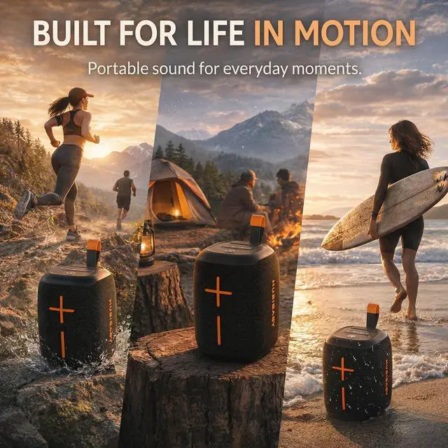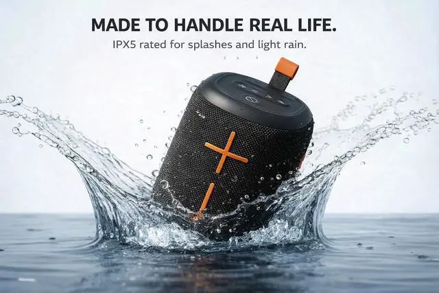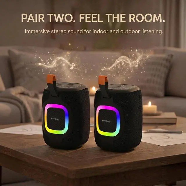 IPX5 WATERPROOF & DURABLE DESIGN: Rated IPX5 waterproof to handle splashes, light rain, and daily moisture with confidence. Ideal for kitchens, patios, camping, or shower listening, with a durable build designed for active, everyday lifestyles. ^^ UPGRADED SOUND WITH OPTIONAL RGB MOOD LIGHTING: Enhanced bass and balanced audio fill outdoor spaces with ease. RGB mood lighting adds atmosphere for evening gatherings and can be turned off anytime for a clean, distraction-free listening experience. ^^