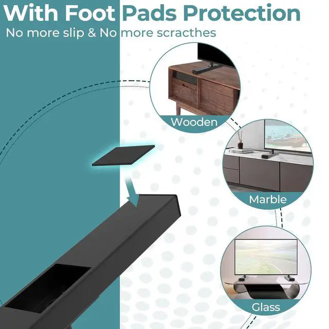Anti-Slip & Surface Protection: Rubber pads on the bottom keep your TV steady and protect your furniture. 4.