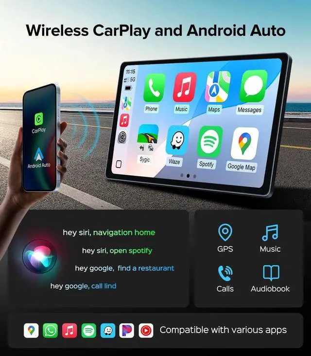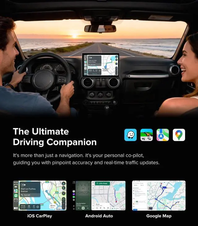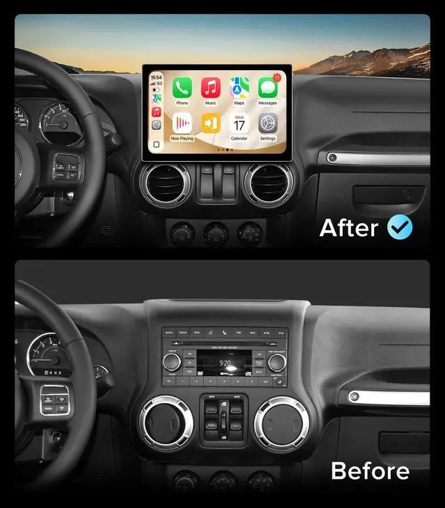Compatibility Car ModelsCar radio stereo upgrade For Jeep Wrangler (JK) 2007-2018; For Jeep Compass/Patriot 2009-2016; For Jeep Grand Cherokee 2005-2011; For Jeep Liberty/Commander 2008-2011; For Chrysler Sebring/Town&Country 2007 2008 2009 2010; For Dodge Grand Caravan 2011 2012 2013 2014; For Dodge Charger 2008 2009 2010; For Dodge Ram 1500/2500/3500 Pickup - 2009 2010 2011 2012 ^^ CarPlay & Android Auto This Jeep Wrangler radio supports wireless/wired CarPlay & Android Auto. Supports Bluetooth connection, Bluetooth calling, USB connection for music and maps. It also supports iPhone Airplay and wireless/wired mirroring, achieving seamless mobile interaction ^^ Function ConfigurationAndroid 13.0 systemthis Jeep Wrangler radio Equipped with 4GB RAM, 64GB ROM for smooth performance.