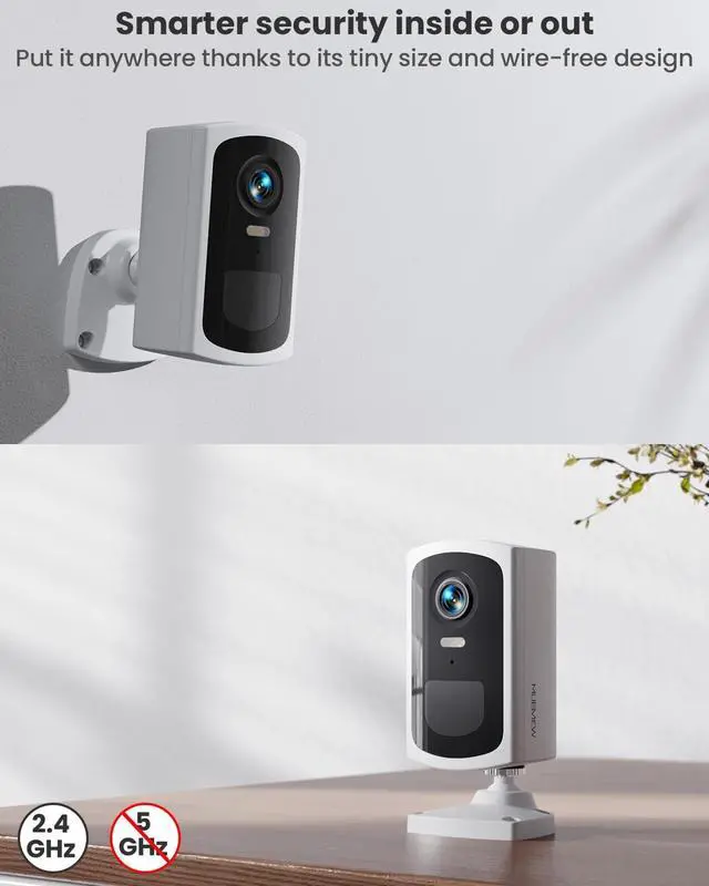 ^^ -: Talk to anyone on outdoor camera wireless with the built-in microphone and speaker. Customize motion zones to receive alerts only when there's movement where it matters most. Two-way intercom allows you to talk to couriers or greet visitors anytime and anywhere. 2.4GH z WiFi only.