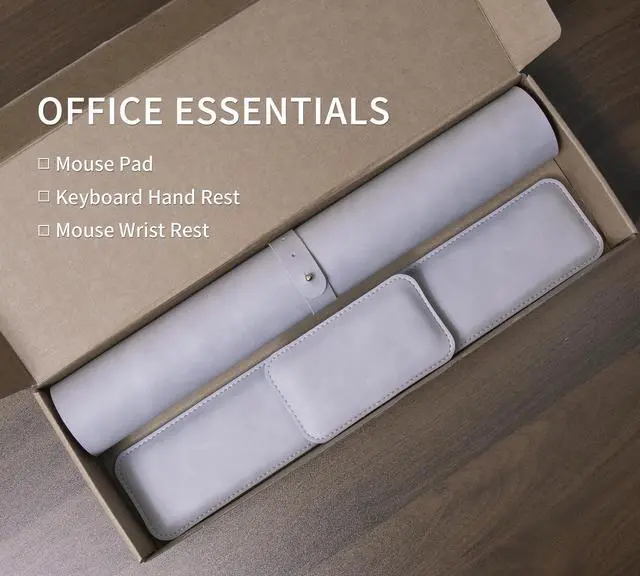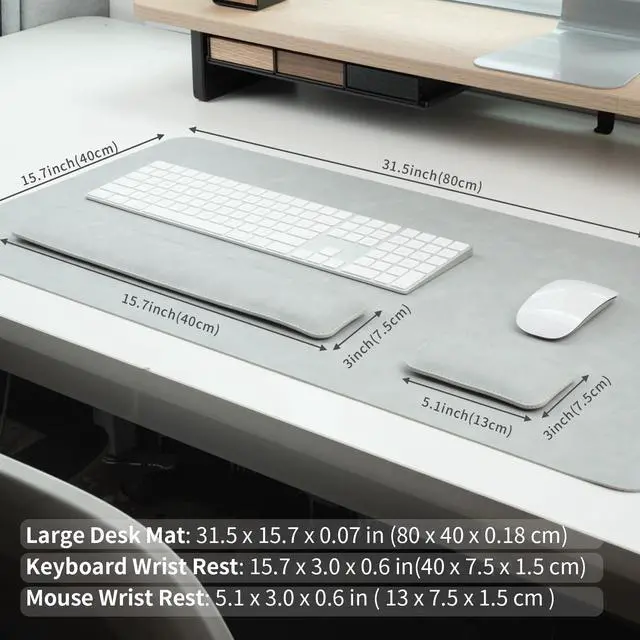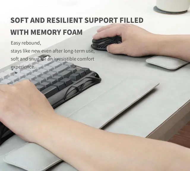 mm thicknessKeyboard wrist rest: 5.1" 3" ( 137.5 cm)Mouse wrist rest: 15.7" 3" ( 407.5 cm)Features 0.6" (19mm) high-density padding for cloud-like comfort and optimal support ^^ Eco-Friendly & Durable Material Waterproof, heat-resistant, and stain-proof surface protects your desk from scratches and spills. Made with non-toxic, adhesive-free materials for safe daily use. Easy to clean and maintain ^^ Versatile Style for Any Setup Available in multiple colors to match various desk styles and home/office decor. The non-slip base ensures stability during use ^^ Premium Gift Ready Backed by our dedicated customer support. Perfect as a thoughtful gift for gamers, professionals, and anyone who values both style and comfort