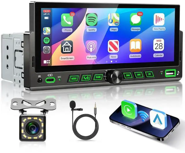 FM: Interactive EntertainmentWith Bluetooth, you can pair your smartphone for hands-free calls and wireless music streaming, keeping single din car radio with carplay and android auto safely tucked away and reducing distractions. The EQ function offers multiple preset sound profiles and adjustable settings, allowing you to fine-tune the audio to your preferences. The FM radio keeps you connected to local news, music, and traffic updates without needing an internet connection, ensuring you stay informed and entertained on every drive. ^^ Steering Wheel Control & Backup Camera: Enhanced Convenience and SafetyThis single din MP5 car player supports steering wheel button learning function, allowing you to control desired functions directly from the steering wheelkeeping hands on the wheel and eyes on the road for a safer, more convenient driving experience. When connected to the car stereo, the monitor will automatically switch to display rearview reversing details, ensuring clear visibility during reversing. ^^ USB, Type-C, and