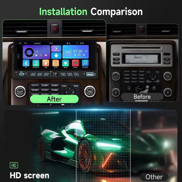 Wireless CarPlay & Android Auto: Effortless SyncThis single din touchscreen car radio is compatible with both wired and wireless CarPlay and Android Auto functions. Connect your mobile phone via a USB data cable or wirelessly to access phone books, emails, notifications, map navigation, music, etc. This innovative wireless carplay and android auto head unit offers a safer and more intuitive way to navigate from connected phones, enhancing your daily drive with great convenience. ^^ Mirror Link and