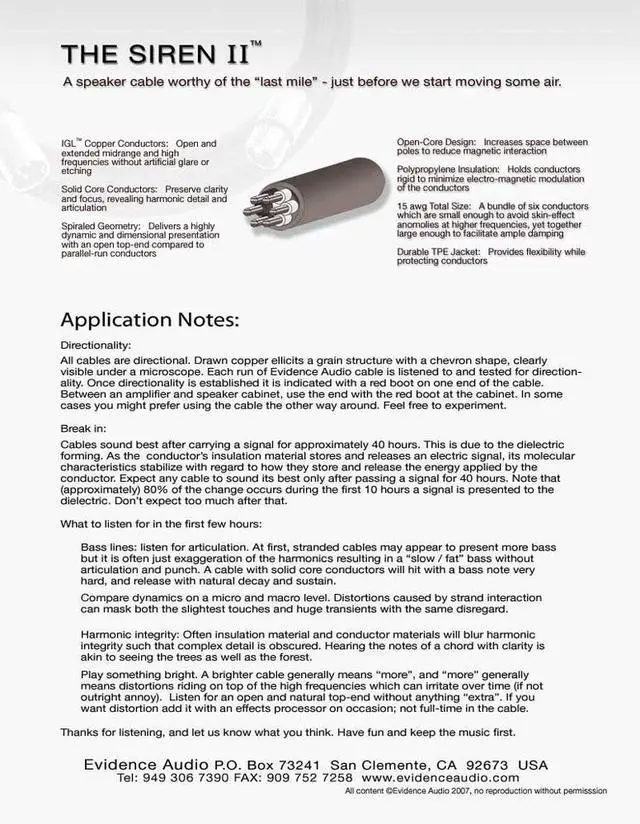 Evidence Audio SI2SS3 Siren II Speaker Cable, 3-foot