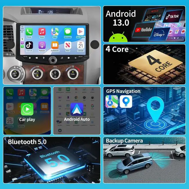 Features: ** - Compatible with 2007-2013 Toyota Tundra - 10-inch Android 14 Touch Screen - Wireless Carplay & Android Auto - 8-Core Processor, 4G RAM + 64G ROM - Bluetooth, WiFi, GPS Navigation - FM Radio & Backup Camera Support - JBL Audio Compatibility Elevate your driving experience with the ultimate car stereo for your Toyota Tundra!