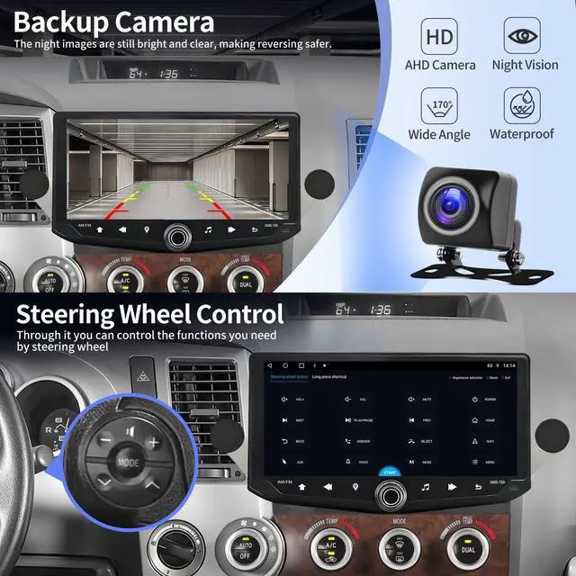 Description: ** Upgrade your driving experience with the **Radio for Toyota Tundra 2007-2013 Car Stereo** featuring a stunning **10-inch Android 14 Touch Screen**. Designed specifically for the 2007-2013 Toyota Tundra models, this high-performance tundra stereo combines advanced technology with user-friendly features to enhance your on-the-road entertainment. With its powerful **4-Core Processor**, **4G RAM**, and **64G ROM**, this radio ensures smooth operation and fast response times, allowing you to access your favorite apps seamlessly. Enjoy the convenience of **Wireless Carplay & Android Auto**, which lets you mirror your smartphone effortlessly for navigation, music, and hands-free calls. Stay connected wherever you go with built-in **Bluetooth** and **WiFi**, enabling easy pairing with your devices and internet access. The integrated **GPS** ensures you never lose your way, while the **FM radio** provides additional entertainment options for your journeys. Safety meets functionality with the included **Backup Camera** feature, making parking and reversing a breeze. Enhance your audio experience with the exceptional sound quality, perfectly tuned for JBL systems, ensuring that every note is crystal clear. Transform your Toyota Tundra radio into a powerful multimedia hub and enjoy all your favorite content with style and ease.