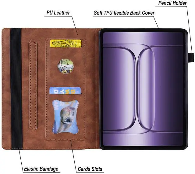 Exclusively designed for OnePlus Pad 2 Pro / OnePlus Pad 3 13.2 inch Released 2025. NOT compatible with any other devices. Please kindly check the model number before purchase. ^^ The document card pocket can easily store notes, cash, cards, two anti-skid strips provide two viewing angles for the stand position, which is convenient for reading, watching movies or typing. It is closed with an elastic band, which makes the tablet firmer when closed, and protects the screen and the cards inside from falling out. Built-in stretchy hand strap, increases handling security, while protecting against accidental dropping.