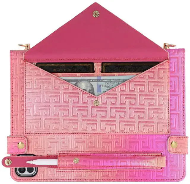 Wallet Design: An envelope pocket external allows you to store your passport and some paper files; also a pencil case pocket designed for Apple Pencil 2 or Apple Pencil Pro; interior with multiple slots for holding your cards and cash.