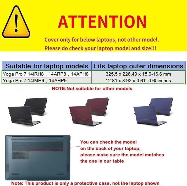 Fits models: only for 14-inch Lenovo Yoga Pro 7 14IMH9 14AHP9 and Lenovo Yoga Pro 7 14IRH8 14ARP8 14APH8. Need to verify that the laptop model meets the above requirements. Dimensions (326*228*21MM ( 12.83 * 8.97 * 0.83 inches)) ^^: This is not a generic case and does not apply to any other model ^^: The outer layer is made of PU leather and microfiber material, and the inner layer is made of real microfiber material.