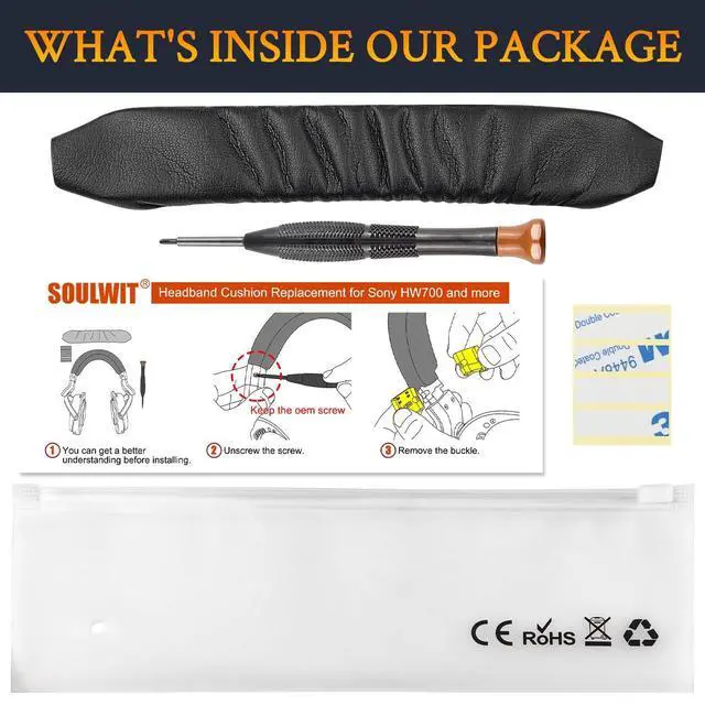 SOULWIT Headband Cover for Sony MDR-HW700, MDR-HW700DS Wireless Headphones, Replacement Headstrap Pad Repair Part - Black