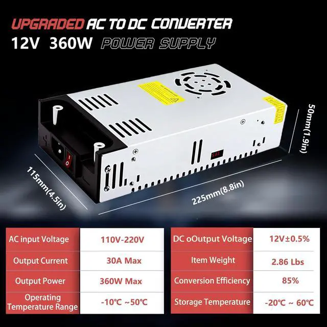 Match Power Appropriately: If the input voltage is 110V, it is recommended to select a switching power supply with 1.4 times the rated power. If the input voltage is 220V, it is suggested to choose one with 1.2 times the rated power. 3.