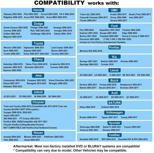 SIMOLIO IR headphones are compatible with Honda Odyssey2003 2004 2005 2006 2007 2008 2009 2010 2011 2012 2013 2014 2015 2016 2017 2018 2019 2020 2021 2022 2023. These Wireless DVD IR headphones are universal(frequencies: CH