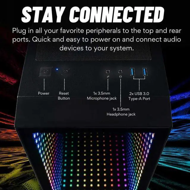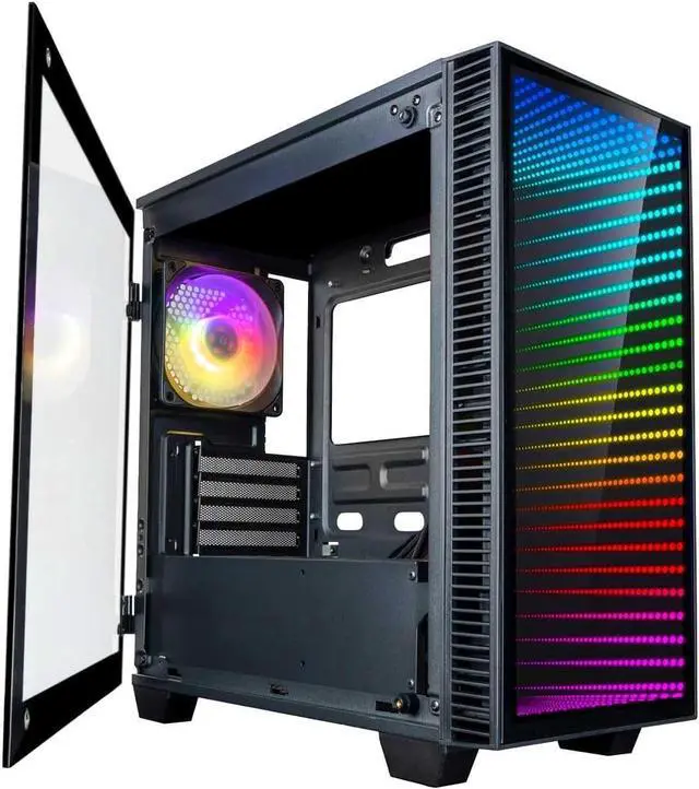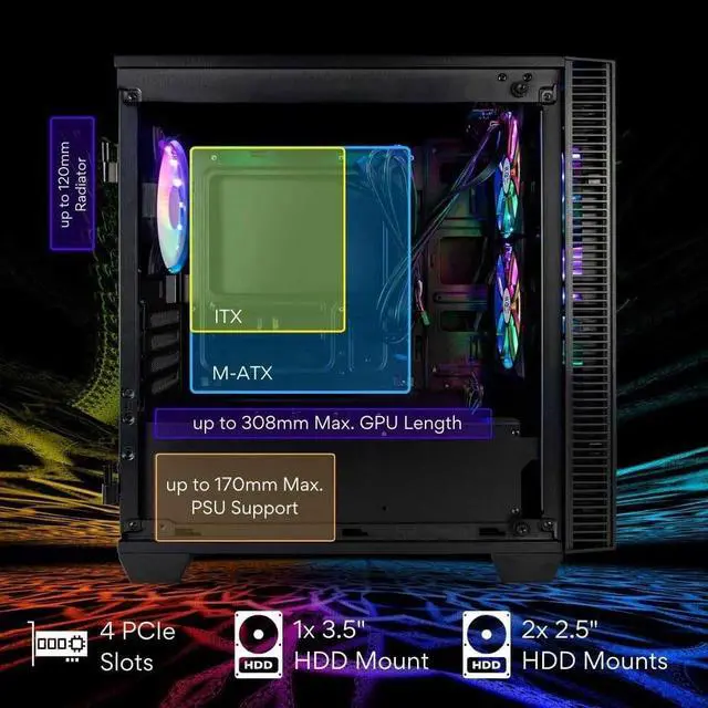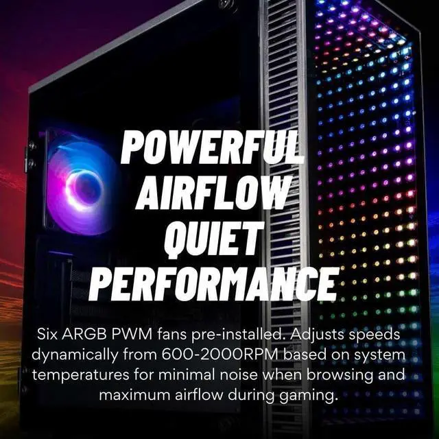 ^^ Dynamic ARGB Style: Personalize your rig's aesthetic to match your every mood. The Continuum features six ARGB fans that offer 6 different color options. Control the vibrant illumination through Dual Mode functionality and sync directly with your motherboard via a 3-pin connector or use the included remote control for instant, hassle-free adjustments. Enjoy immediate value and simplified building with a powerful 500W PSU pre-installed, perfectly complementing the 347mm GPU clearance.