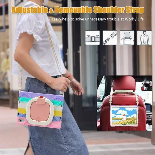 Precision-engineered cutouts maintain full access to all ports, buttons, and functions for iPad 11th/10th Gen. Features military-grade shock absorption with reinforced corner protection and dust-resistant port covers to safely guard your ipad a16 11'' 2025 /10th Gen 10.9 '' 2022 device. ^^ [Portable/Adjustable Shoulder Strap] Keep your hands completely free with this versatile strap - perfect for work sessions, gaming marathons, or vacation adventures. Ditch bulky purses and bags while enjoying multiple safe ways to fix the ipad, including car seat headrests or any convenient spot you choose.
