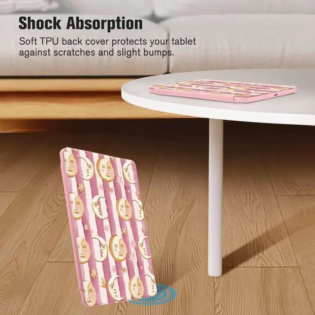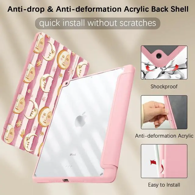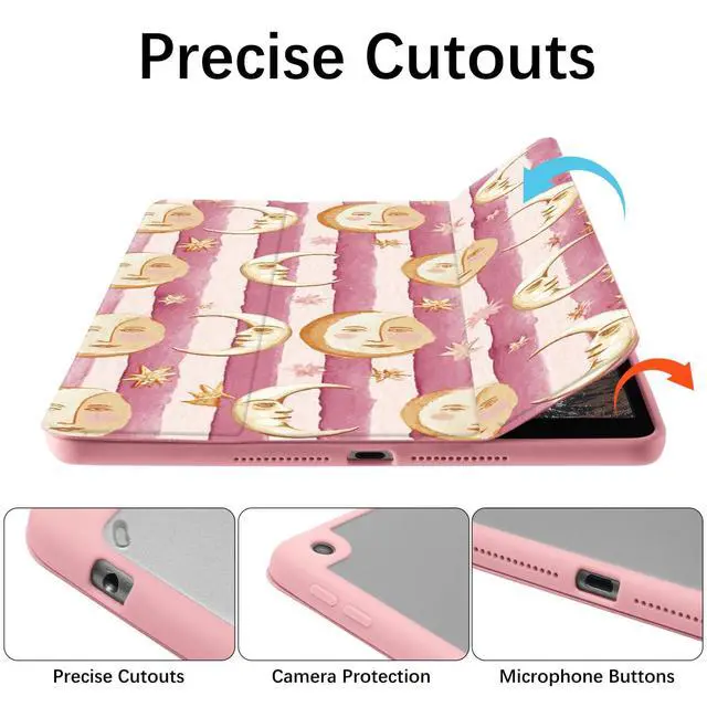 High Quality&Perfect Fit: This Pink cute sun&moon case for ipad is made of soft silicone and Transparent anti drop acrylic back shell. It has a comfortable lining that can protect your pad from scratches and bumps. Meanwhile, this kawaii cartoon girl print cover for ipad is perfectly tailored to easily access all controls and functions (camera, speakers, ports, and buttons) ^^