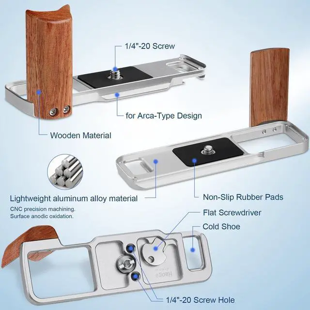 Brand Assurance: This Haoge retro camera grip not only enhances holding comfort but also adds a classic touch to your camera, this side handle features a luxurious Black Walnut L-grip paired with a sturdy aluminum alloy bottom quick-release plate. The Black Walnut offers a warm, natural feel and exquisite grain, while the aluminum alloy ensures long-lasting durability, making it a reliable companion for your Fuji XE5.