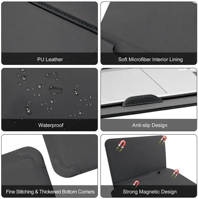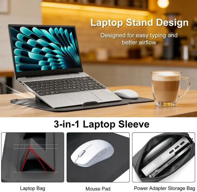 (Note: Some laptops with compatible dimensions may not fit into this case if they are particularly thick or heavy. Please verify your device specifications before purchase. ) ^^ Premium MaterialThe 15"- 15.6" -16" laptop case is crafted from high-quality waterproof PU leather with a soft microfiber interior lining, effectively protecting your device from daily scratches and impacts. It also safeguards against collisions and dust. The smooth surface and gentle texture make it easy to clean, while offering a skin-friendly comfort that complements any style and device. ^^ 3-in-1 DesignThis portable 15"-16" laptop case combines multiple functionsacting as a storage sleeve, adjustable stand, and integrated mouse pad. Perfect for office and travel, it eliminates the need for extra accessories, allowing you to work effortlessly anywhere. ^^ Dual-Angle Adjustable StandPlace your laptop on the stand to adjust viewing angles, reducing neck strain and providing optimal ergonomic comfort. The ventilated design promotes heat dissipation, effectively extending your laptops lifespan. ^^ Anti-collision corner designMultiple layers of protection to safeguard your laptop. Equipped with thickened corners and an anti-slip base, it is also wear-resistant, scratch-resistant, waterproof, and stain-resistant, effectively resisting shocks and drops and reducing wear and tear on your device.