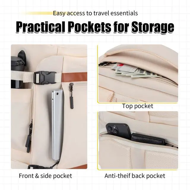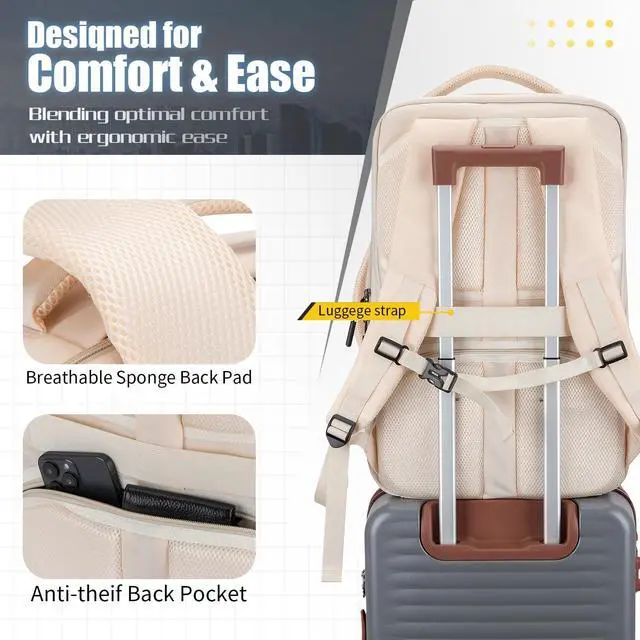 Carry & Versatile Design: Ergonomic padded back panel, adjustable chest buckle, and breathable shoulder straps reduce pressure for all-day comfort. Top and side handles offer multiple carry options. Luggage strap fits over suitcase handles